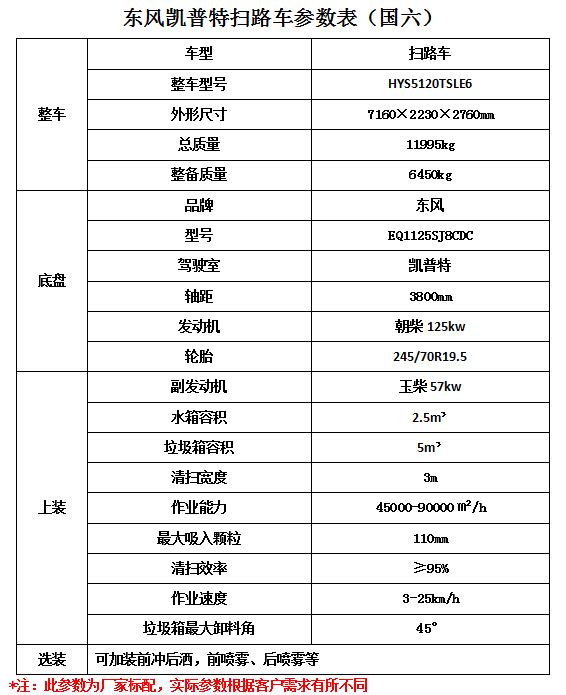 | 虹宇HYS5120TSLE6扫路车底盘参数 |
