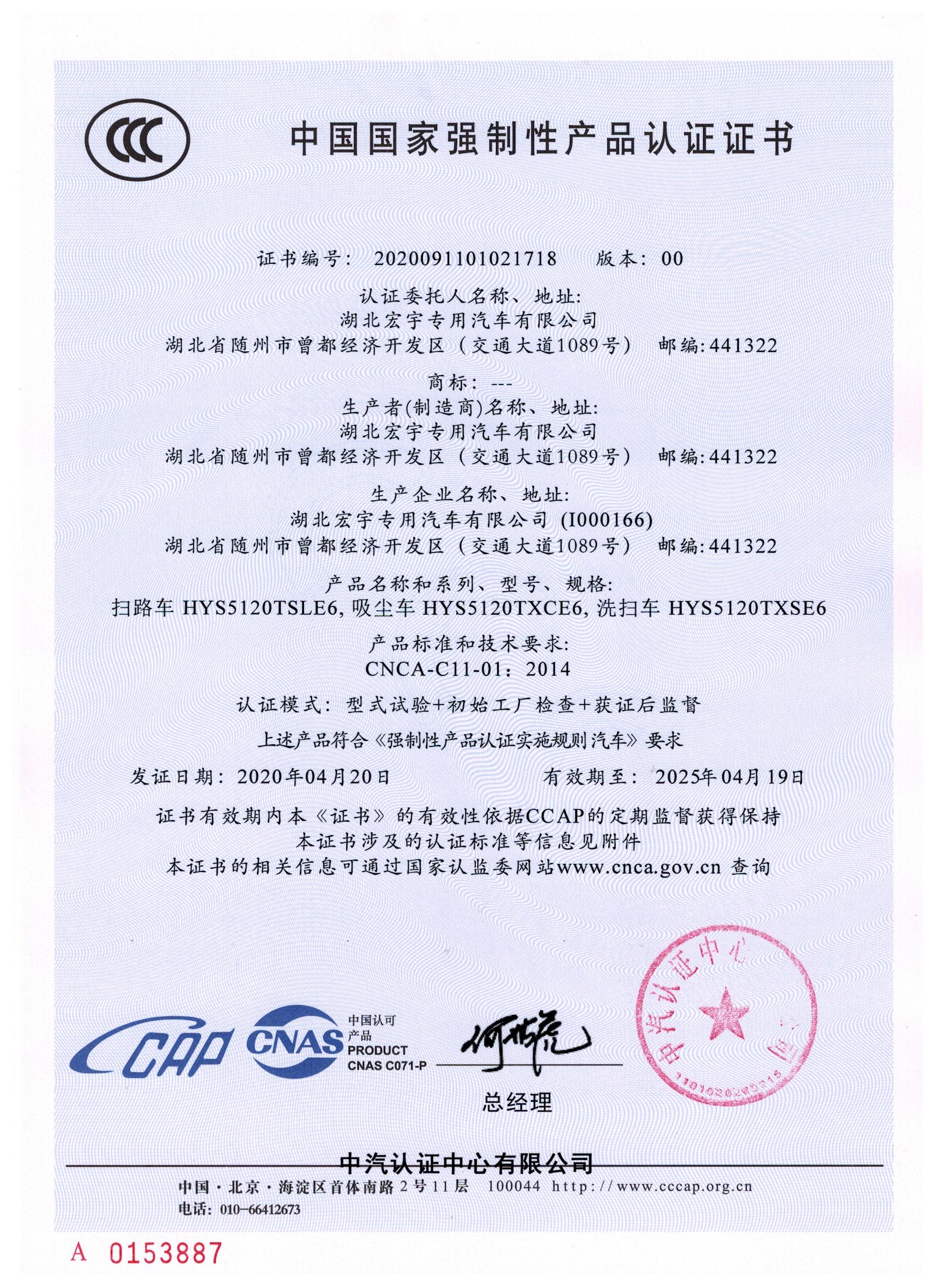 虹宇HYS5120TXCE6吸尘车发动机参数