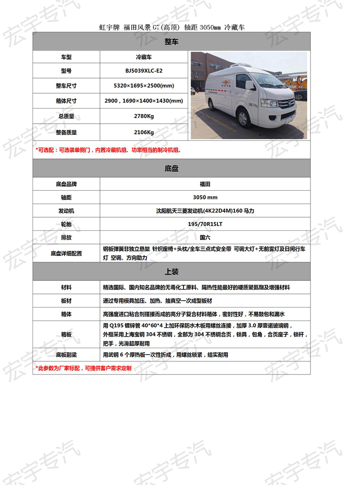 | 福田BJ5039XLC-E2冷藏车底盘参数 |