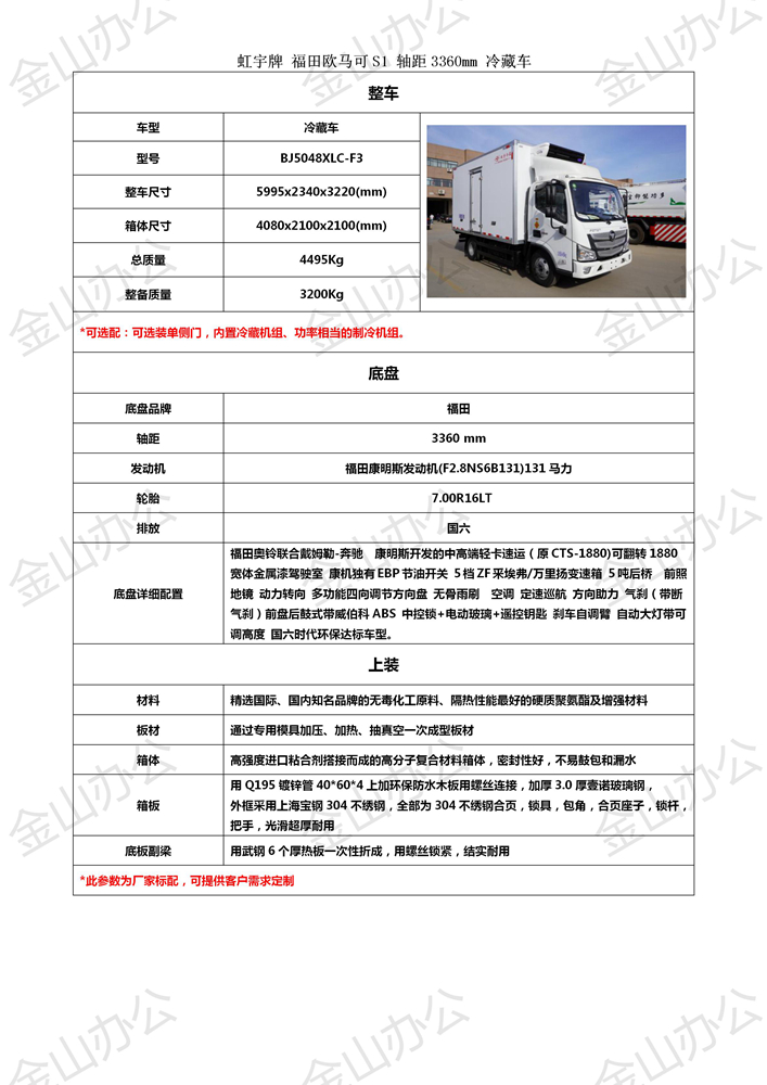 | 福田BJ5048XLC-F3冷藏车底盘参数 |