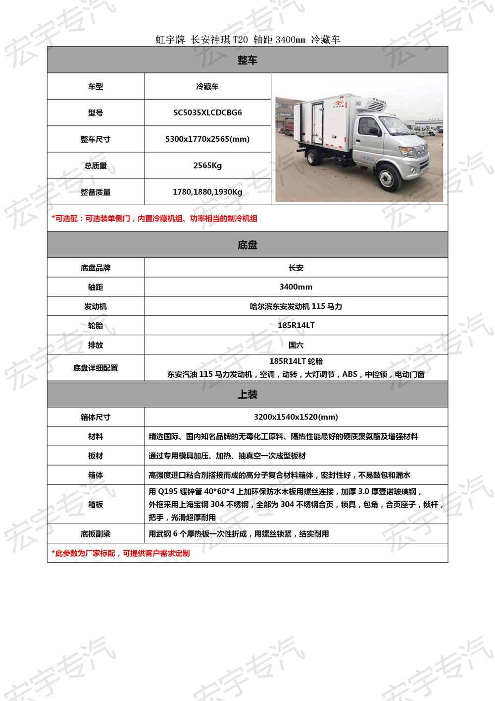 | 长安SC5035XLCDCBG6冷藏车底盘参数 |